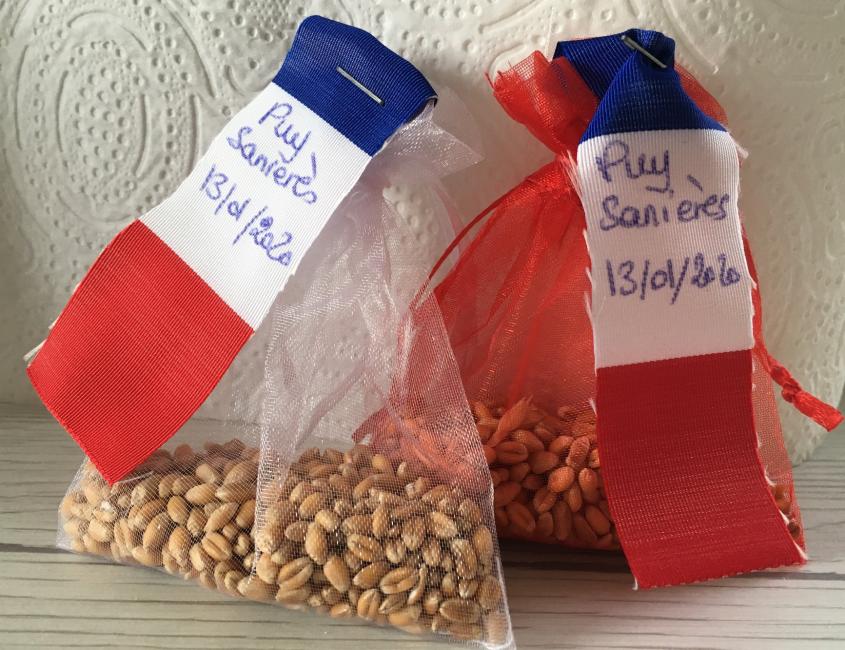 Personnellement très attachées aux signes et aux symboles, je souhaitais que vous puissiez quitter cette soirée en emportant un souvenir. Voici pour chacun d'entre vous un petit sachet de blé. En effet, comme nous avons récolté ce que nos prédécesseurs ont semé, ces grains de blé symbolisent le passage de relais et la récolte que feront les générations futures de ce que, à notre tour, nous avons semé. C'est une céréale sacrée dont le grain meurt pour renaître ! Signe de bonheur et de prospértié, ce blé symbolise la fécondité de la terre et la fertilité de l'âme éclairée.