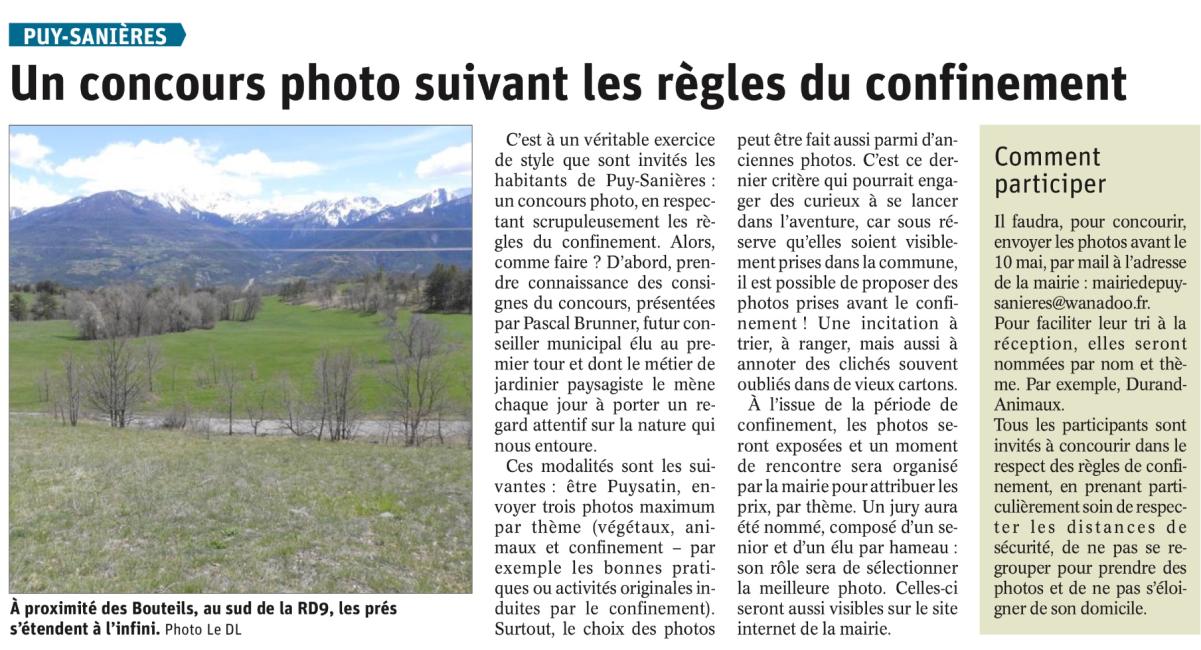 20 avril 2020 Infos pratiques Mairie de Puy-Sanières 04 92 43 38 88 Nous contacter A ne pas manquer Actualités Evénements