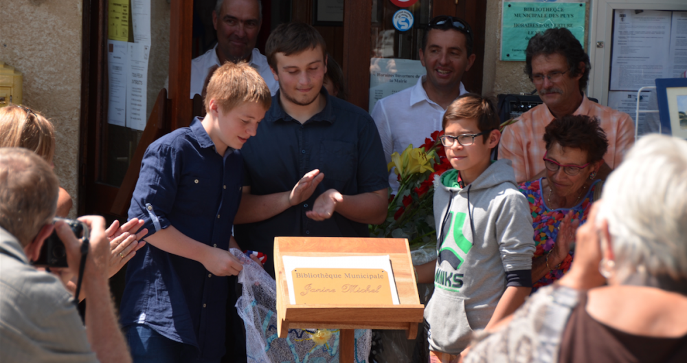 Près de 70 personnes ont répondu à l’invitation des mairies de Puy Sanières et Puy Saint Eusèbe pour inaugurer une plaque à la mémoire de Janine Michel, écrivaine et bénévole de la bibliothèque communale de Puy Sanières qui porte désormais son nom. L’hommage a été rendu en présence Madame Ferotin vice présidente du Département en charge du patrimoine, des maires et de nombreux conseillers municipaux de nos 2 communes. Des parents, des amis et des bénévoles de la bibliothèque ont tenu à s’exprimer pour rappeler la vie et la personnalité de Janine. Tous ont souligné son amour pour la littérature et le dessin, sa bonne humeur, ses éclats de rire et ses nombreuses actions pour la vie associative. Ses 3 petits enfants ont ensuite dévoilé la plaque commémoratrice. La cérémonie s’est terminée autour du verre de l’amitié, moment privilégié d’échange de souvenirs de notre amie trop tôt disparue.